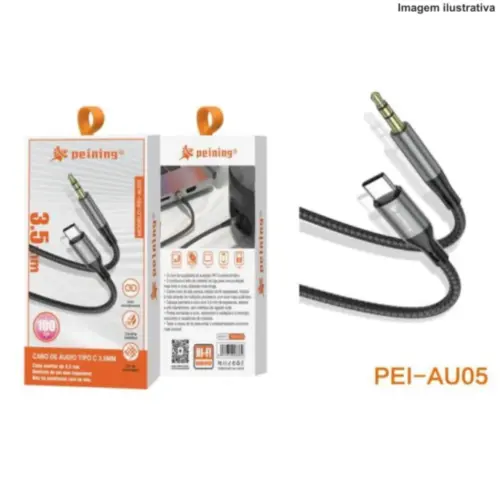 Cabo Adaptador de Áudio P2/Tipo C PEI-AU05 – Som Claro e Compatibilidade