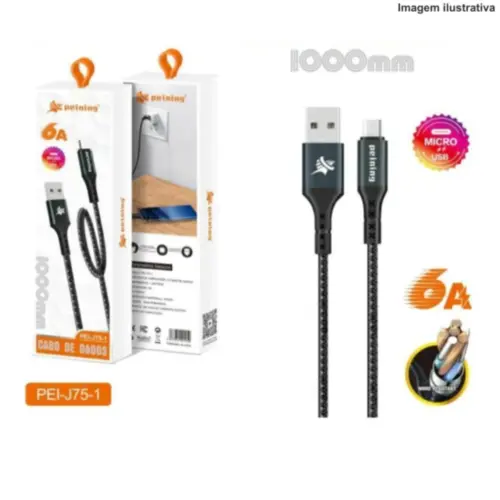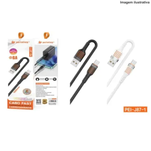 Cabo V8 Turbo Fast Charging PEI-J01 Peining – Carregamento Rápido e Eficiente