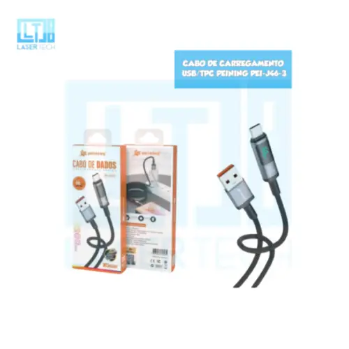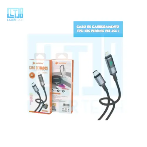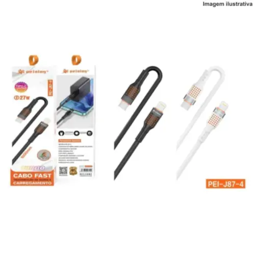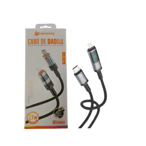 Cabo Reforçado com Visor iOS/Tipo C 1M 27W PEI-J90-4 – Rápido e Moderno