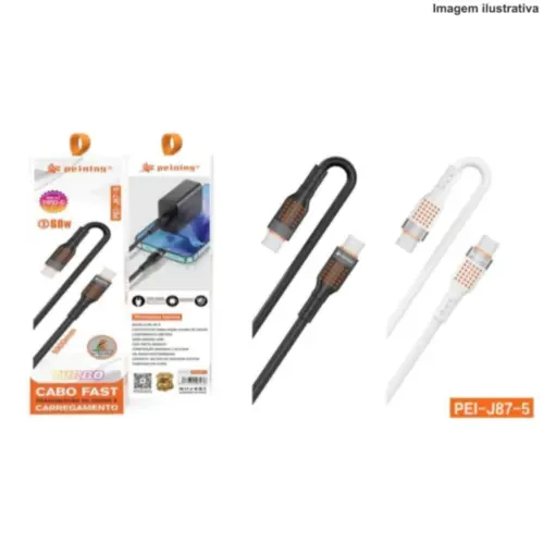 Cabo de Dados Tipo C/iOS 1M 30W PEI-J86-4 – Carregamento Inteligente e Rápido