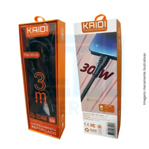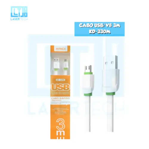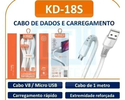 Cabo de Carga Rápida 2M V8 KD-327M Kaidi – Alta Velocidade e Durabilidade
