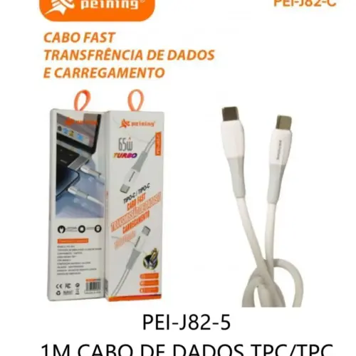 Cabo Fast Turbo 1M 6A Tipo C/Tipo C PEI-J87-5 – Carregamento Rápido e Seguro