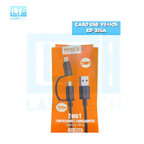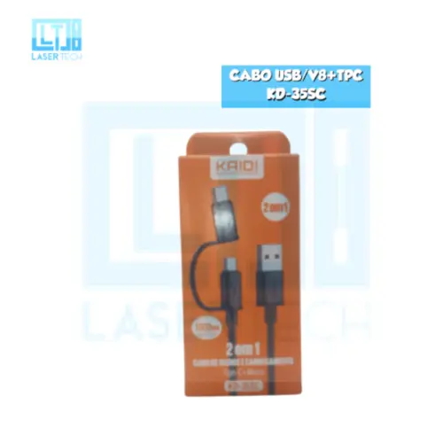Cabo 2 em 1 Tipo C + V8 Kaidi KD-35SC – Prático e Compatível com Diversos Dispositivos