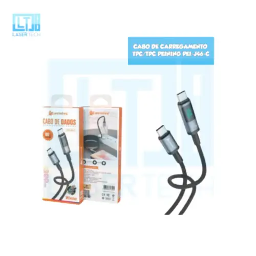 Cabo Reforçado com Visor Tipo C 1M 100W PEI-J90-5 – Ultra Rápido e Durável