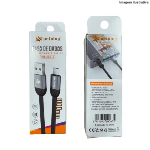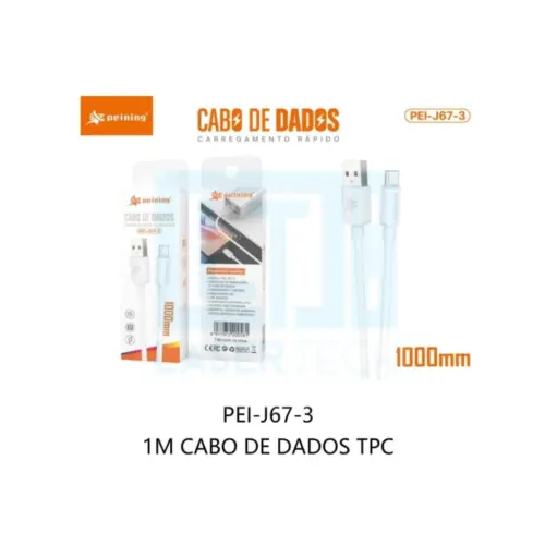 Cabo de Dados Tipo C 1M Peining PEI-J68-3 – Carregamento Rápido e Seguro