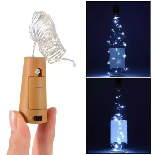 Rolha com Fio de Fada Branco Frio a Pilha – Decoração Iluminada e Charmosa