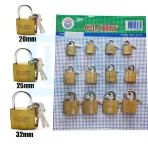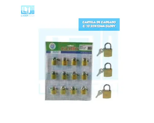 Cartela de Cadeados com 12 Unidades GLORY 20x25x32 – Segurança e Variedade