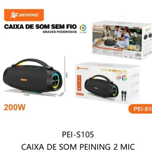 Caixa de Som 30W LED RGB PEI-267BT Peining – Som Potente e Visual Moderno