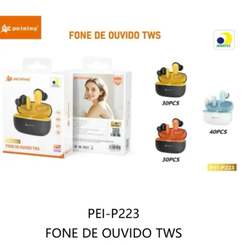 Fone de Ouvido Sem Fio TWS PEI-P621 – Som Nítido e Design Ergonômico