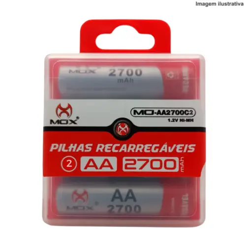 Kit com 2 Pilhas Recarregáveis AA MO-AA2700C2MOX – Alta Capacidade