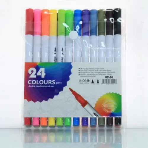 Kit 24 Canetinhas Ponta Dupla SCB-24 001-24 – Pintura e Contorno em Cores Vivas