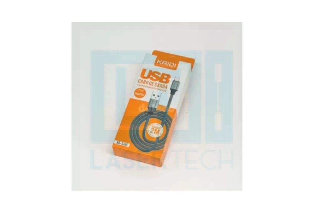 Cabo V8 USB Rápido 2M Preto KAIDI KD-336S / KD-336M – Potência e Durabilidade