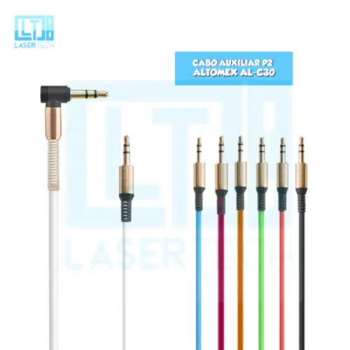 Cabo Auxiliar P2 Colorido Altomex AL-C30 – Conexão Versátil e Áudio Limpo