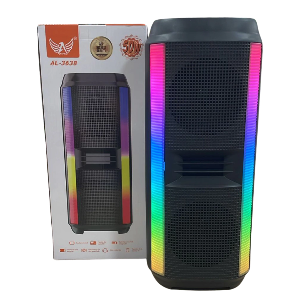 Caixa de Som AL-3638 Bluetooth 50W com LED RGB Altomex – Som Envolvente e Design Moderno