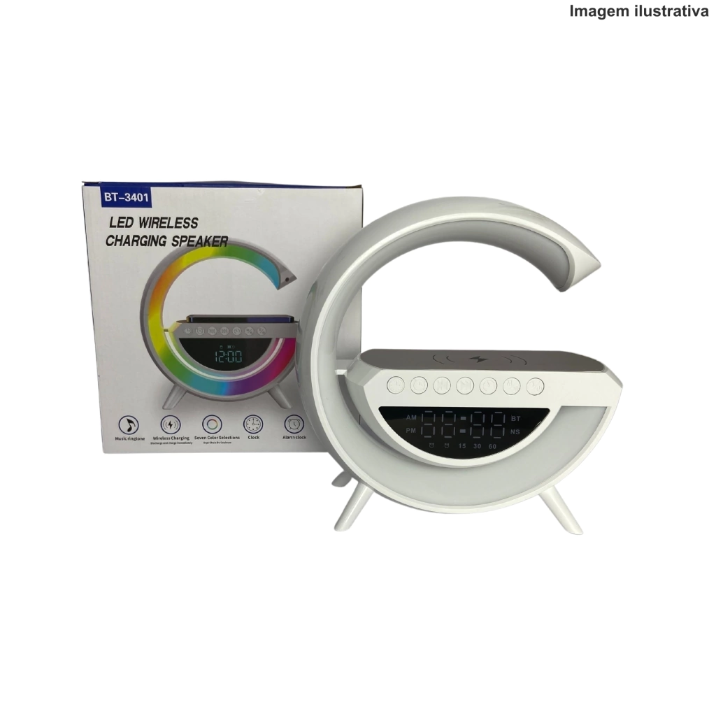 Caixa de Som Grande com Relógio e Carregador por Indução BT-3401 – Som e Tecnologia em um Só Produto
