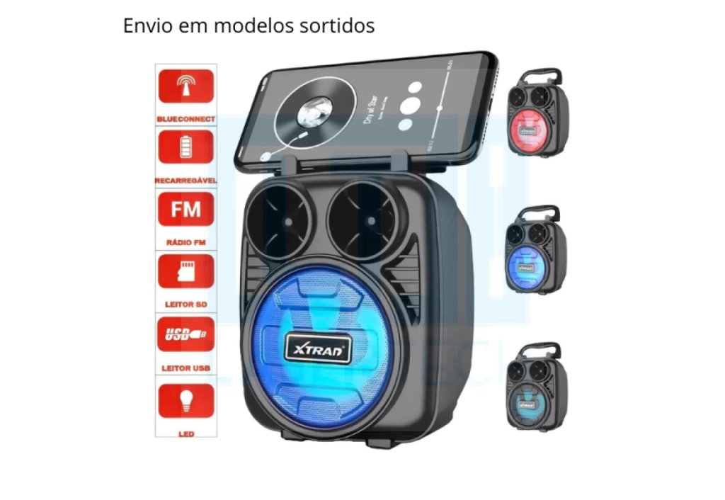 Caixa de Som AL-3638 Bluetooth 50W com LED RGB Altomex – Som Envolvente e Design Moderno