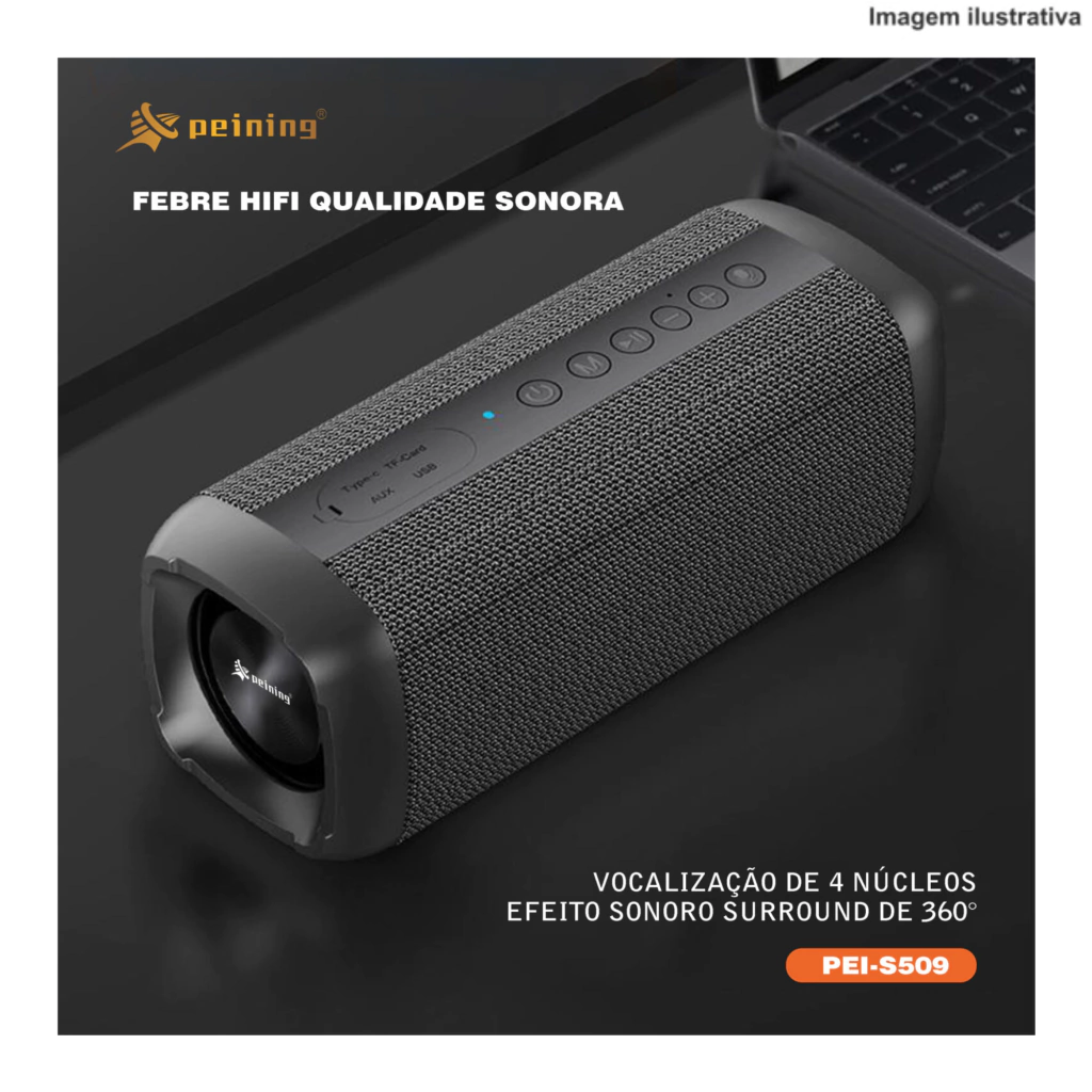 Caixa de Som 10W PEI-232BTS Peining – Graves Potentes e Design Moderno