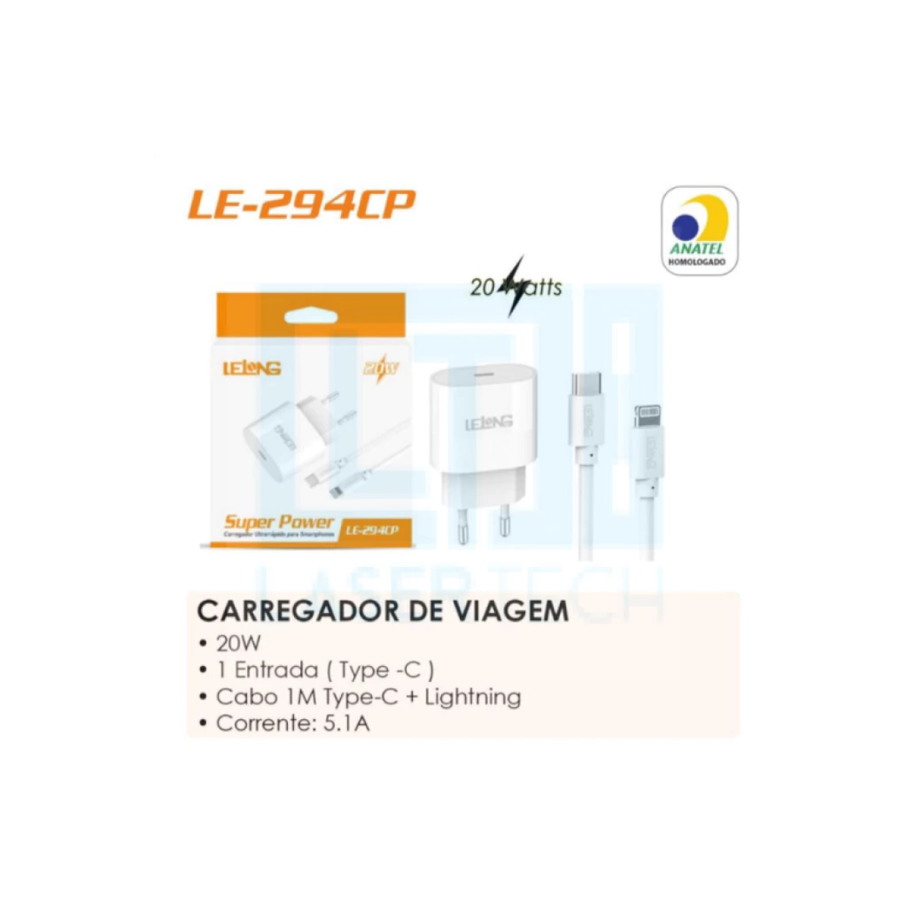 Carregador Turbo PD 3.0 20W iOS LE294CP – Rápido e Seguro
