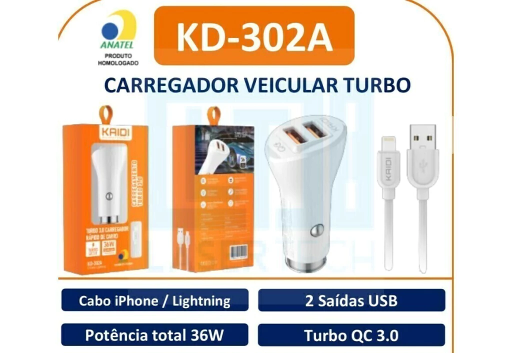 Carregador Veicular iOS KD-302A – Rápido e Eficiente