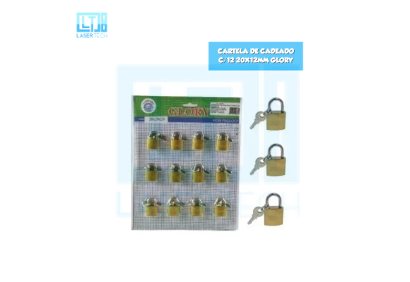 Cartela de Cadeado 12 Unid 20x12mm Glory – Segurança e Resistência
