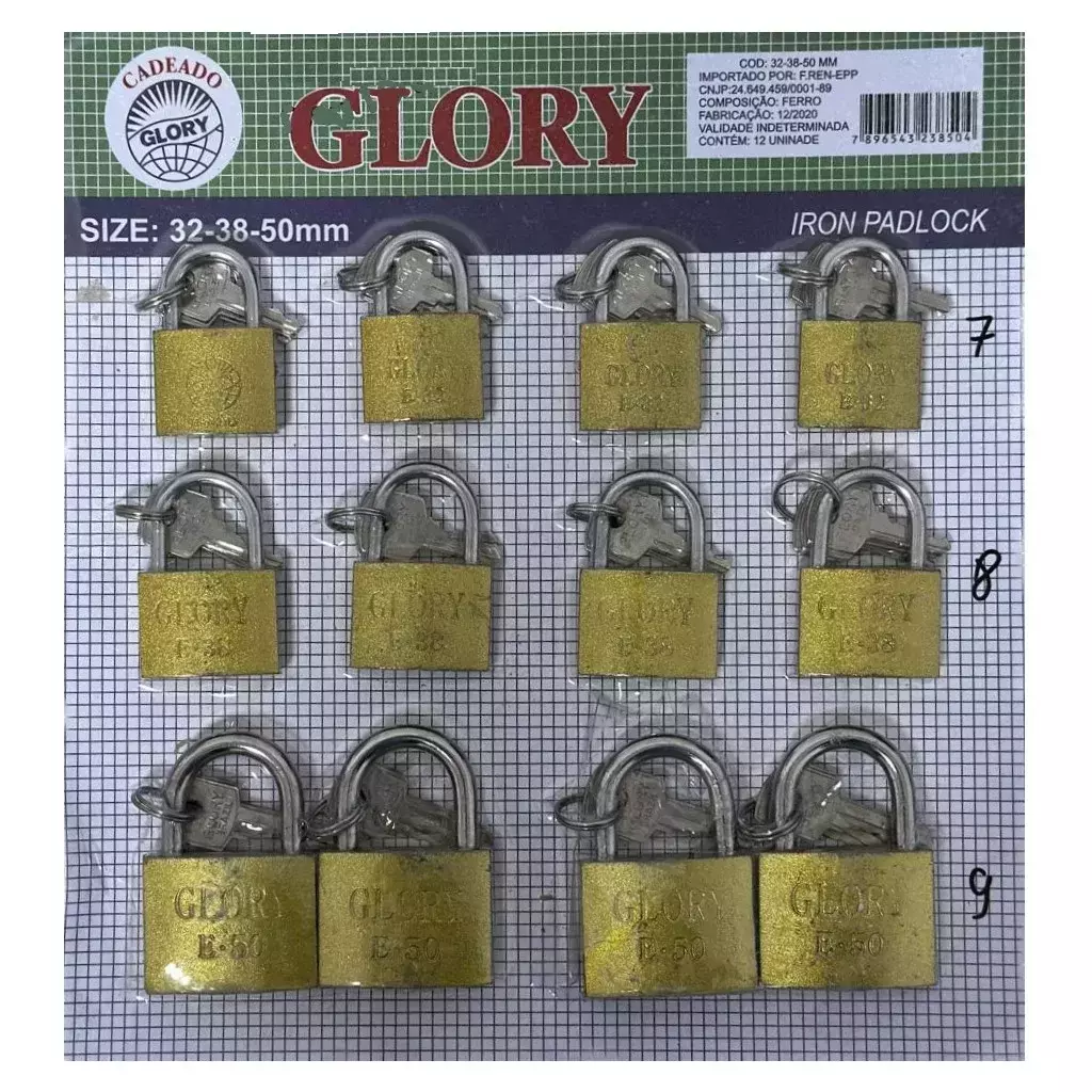 Cartela de Cadeados com 12 Unidades GLORY 20x25x32 – Segurança e Variedade