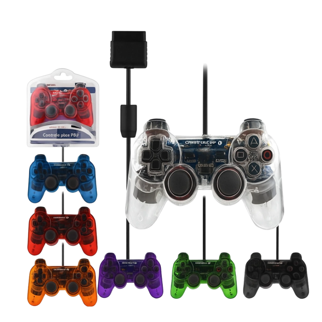 Controle PS2 Transparente com Fio MO-TMPS2 – Design Gamer Clássico