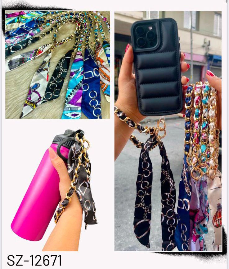 Corrente para Celular e Garrafa com Laço de Seda – Estilo e Versatilidade