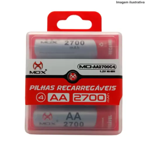 Kit 4 Pilhas Recarregáveis AA MO-AA2700C4MOX – Economia e Alta Duração