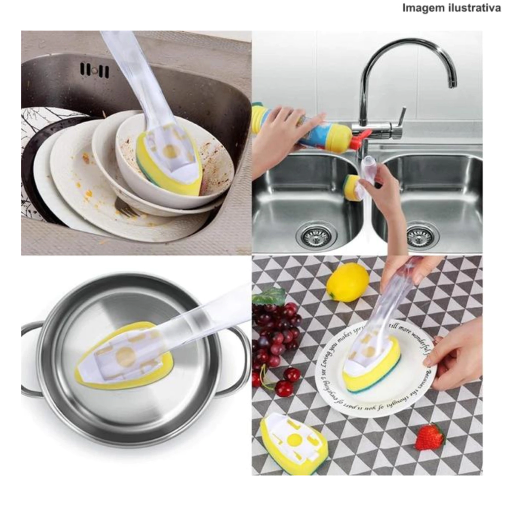 - Dispenser Integrado: Aplica o produto de limpeza diretamente na esponja.