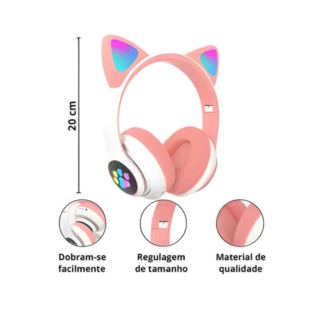 Fone de Ouvido Sem Fio Gatinho BM-222 – LED Colorido e Som Envolvente
