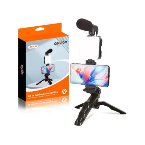 Kit de Iluminação Fotográfica com Microfone OR-PL04 – Completo e Profissional