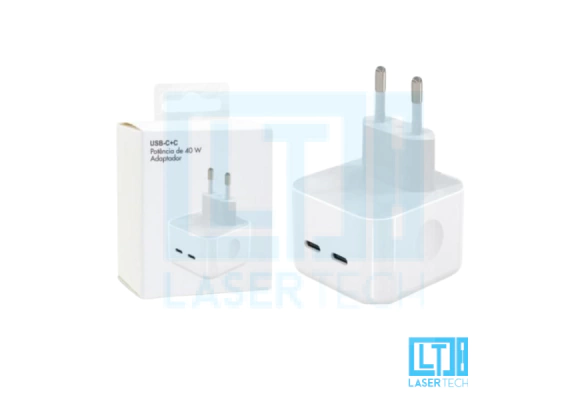 A Fonte Duplo USB-C 40W é compacta e poderosa, ideal para carregar rapidamente dois dispositivos ao mesmo tempo. Com 40W de potência total, possui duas portas USB-C para carregamento eficiente. Leve e segura, é perfeita para viagens, home office e uso diário.