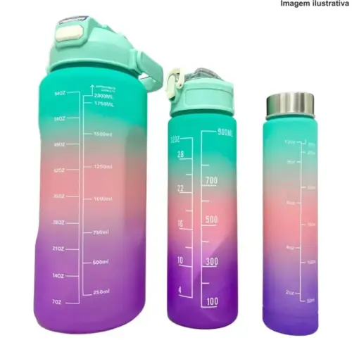 Kit Garrafas Motivacionais 3 Unidades – Hidratação com Estilo e Praticidade