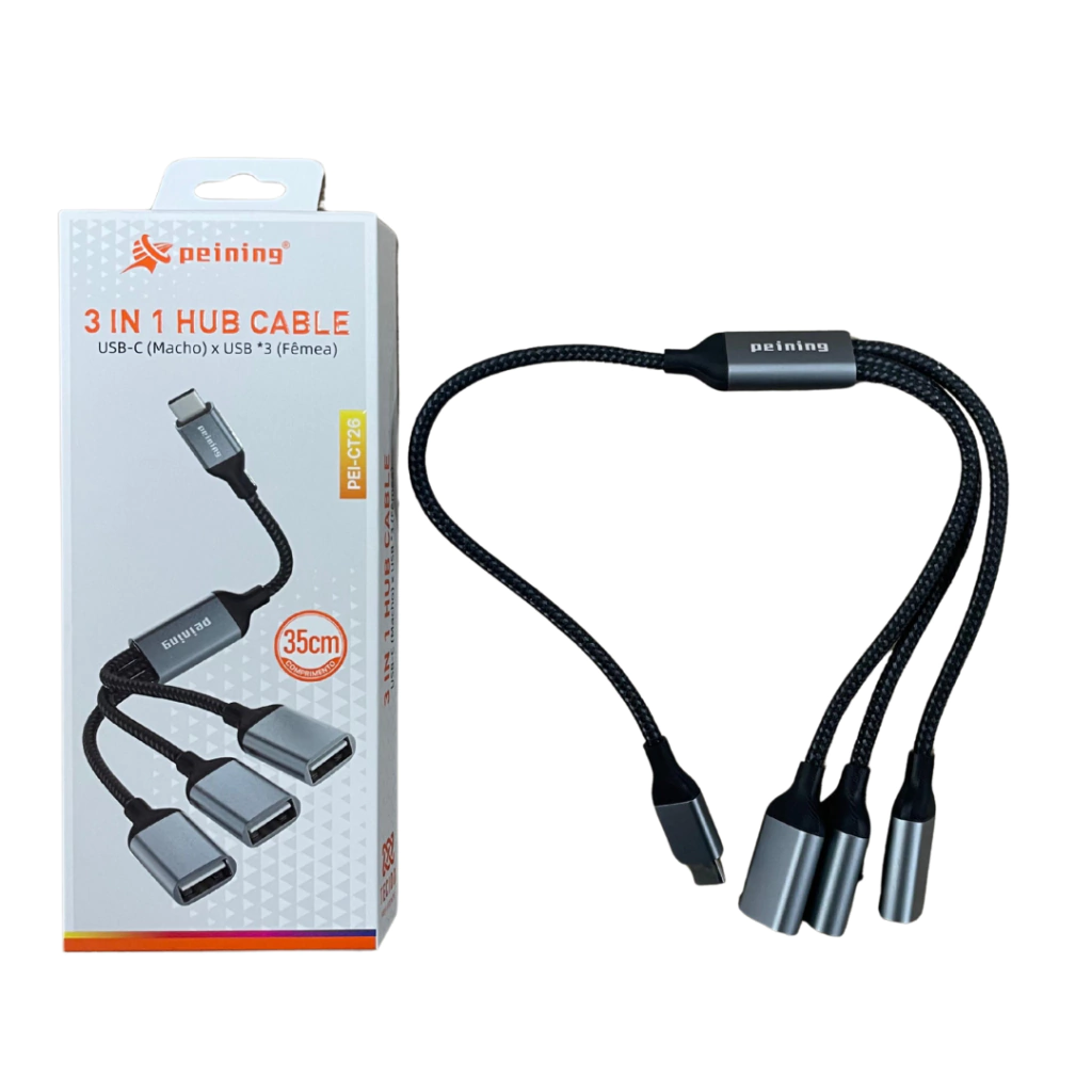 Hub 3 em 1 Tipo-C PEI-CT26 – Compacto e Multifuncional