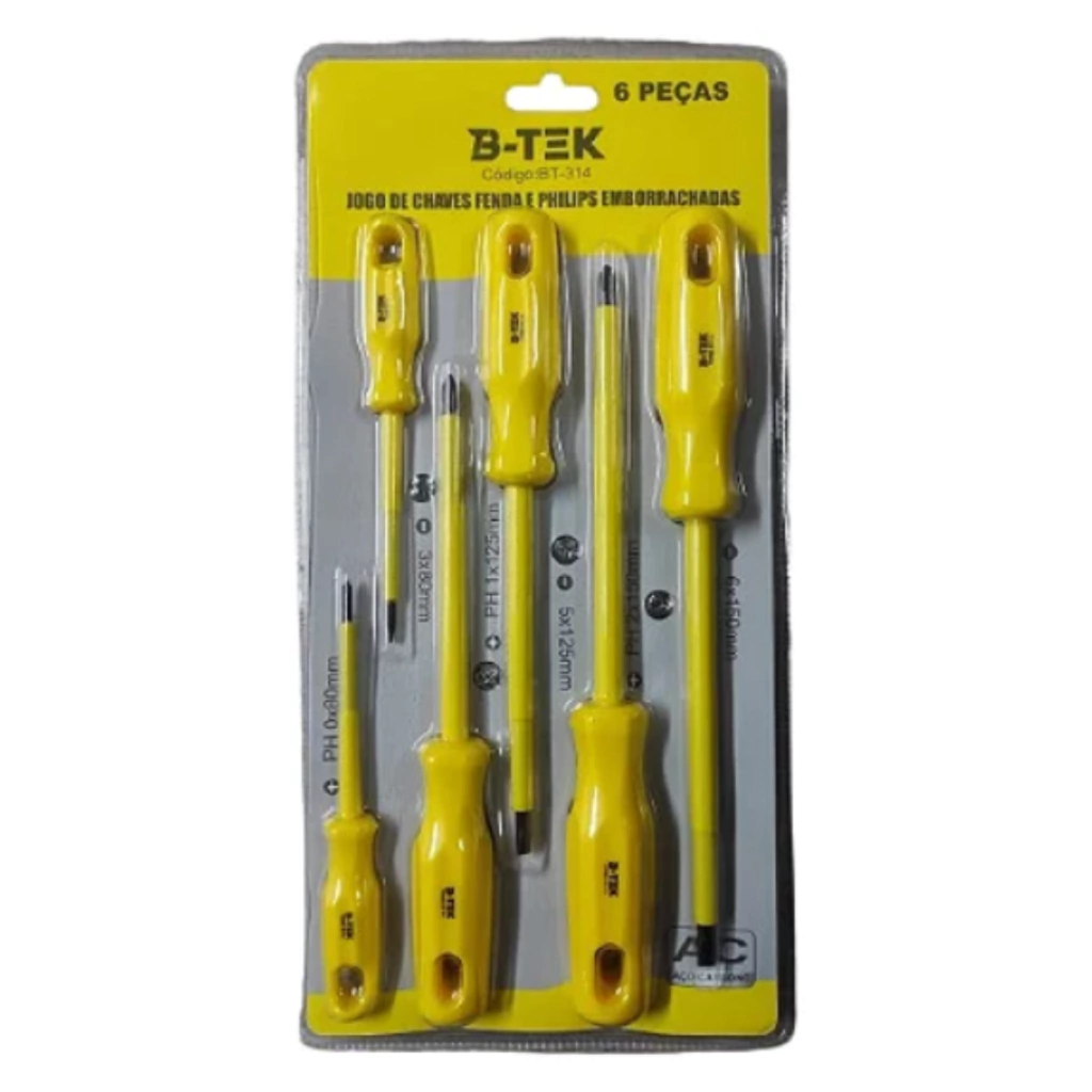 Jogo de Chaves Fenda e Philips Emborrachadas BT-314 – Resistência e Precisão