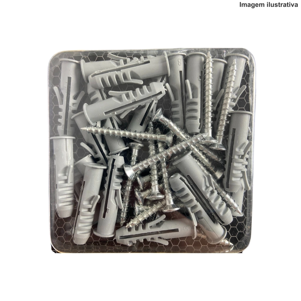 O Jogo de Parafuso com Bucha 8x40mm é ideal para fixações seguras e duráveis. Feito com materiais de alta resistência, garante uma fixação firme em diversos tipos de superfícies. Acompanha parafusos e buchas de fácil instalação.
