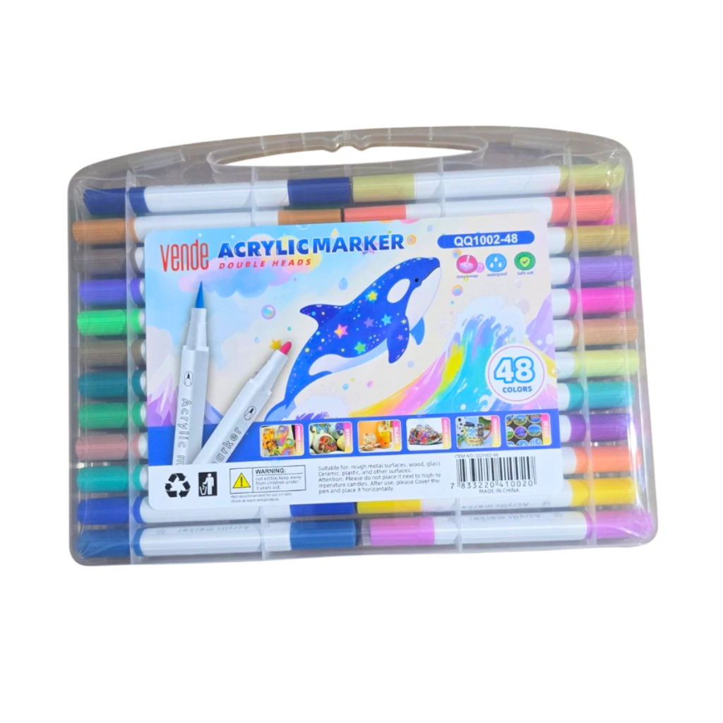 O KIT 48 Canetinhas Acrílicas Duas Pontas QQ1002-48 é perfeito para quem busca criatividade e versatilidade na arte. Com 48 cores vibrantes e pontas duplas (fina e grossa), permite traços precisos ou preenchimentos amplos. Ideal para desenhos, lettering e projetos DIY.