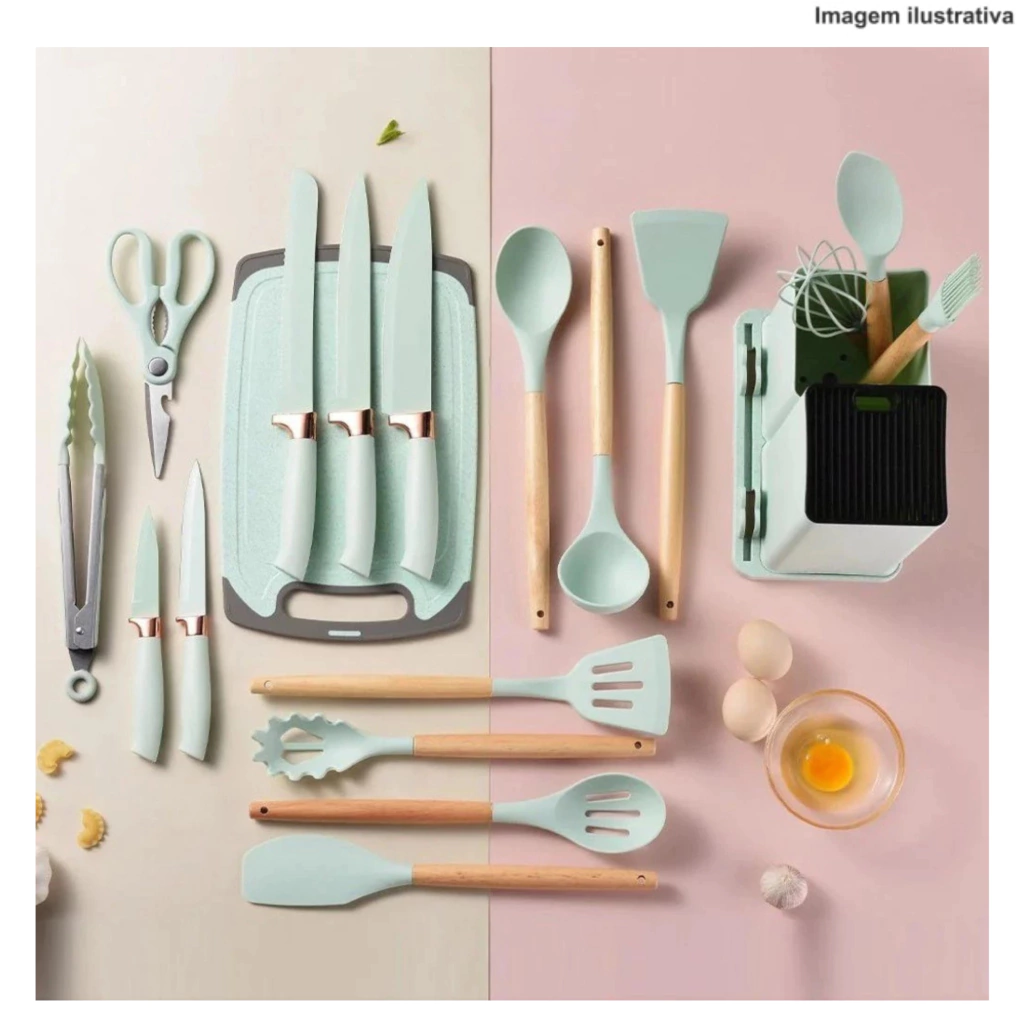 Este kit é perfeito para quem busca praticidade e qualidade na cozinha. Com colheres de silicone, ele não arranha suas panelas, garantindo maior durabilidade. O faqueiro acompanha o conjunto, proporcionando uma refeição completa.
