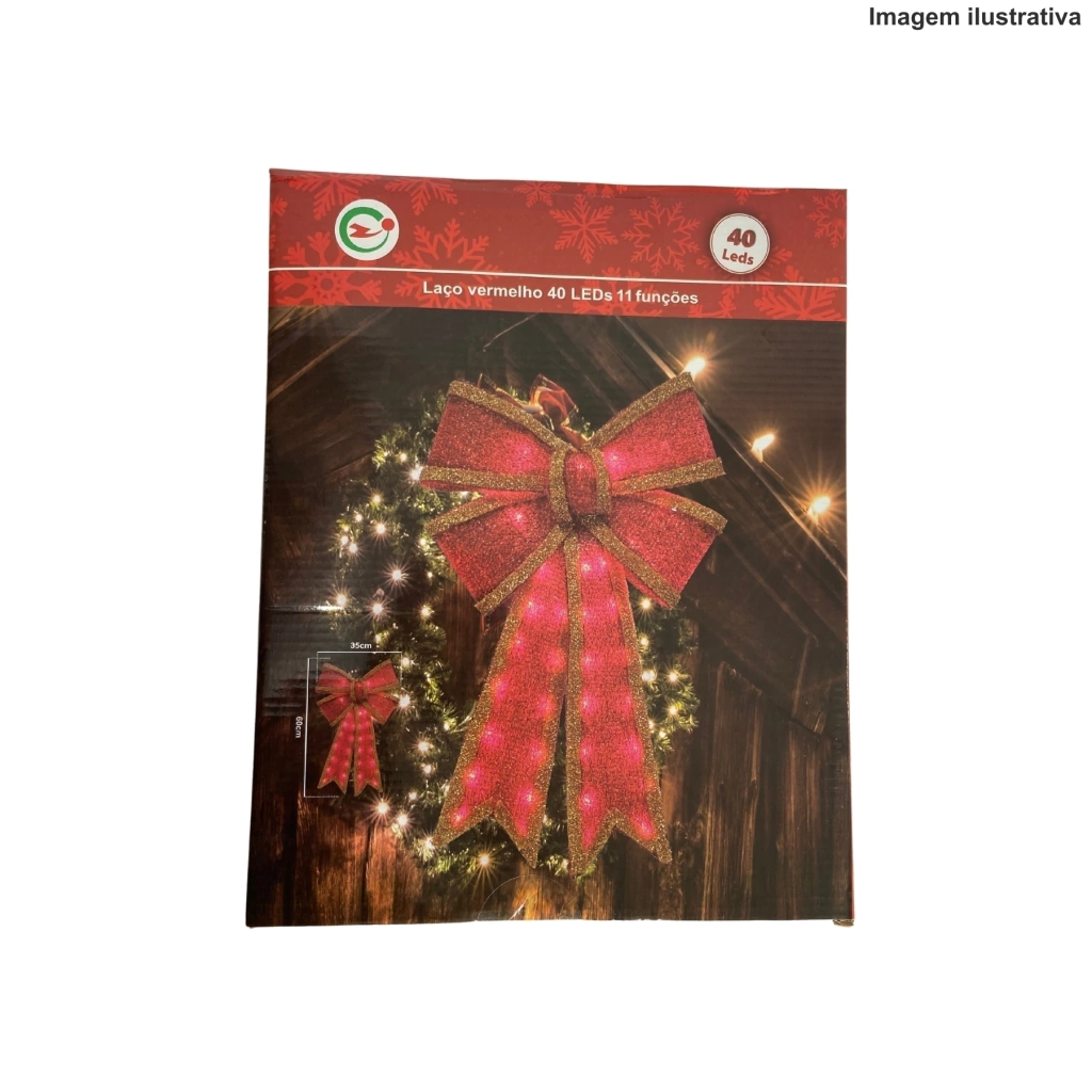 Laço Vermelho 40 LEDs 11 Funções Bivolt 60cm