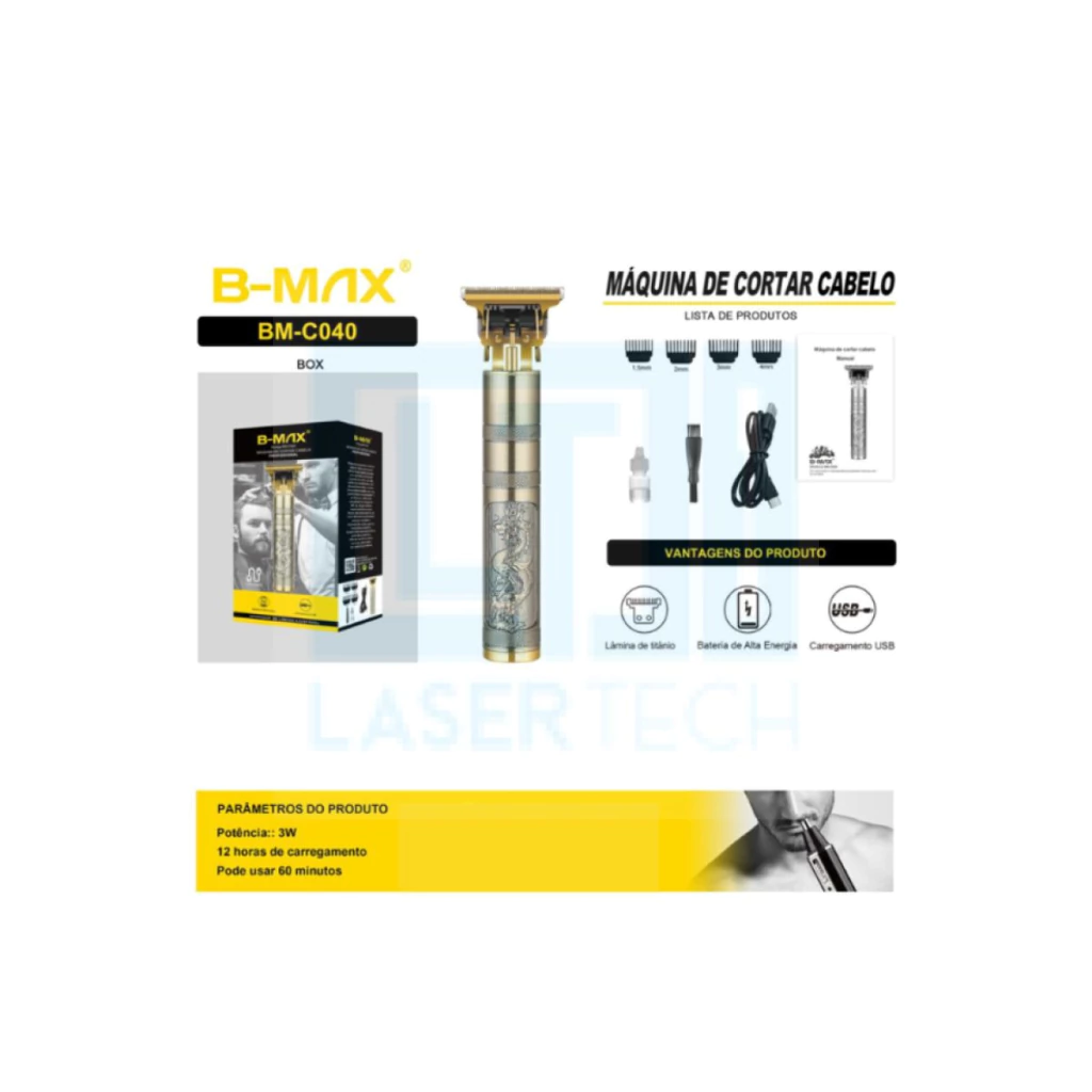 Máquina de Cortar Cabelo Dragãozinho BM-C040 B-Max – Potência e Precisão